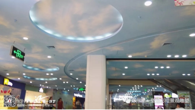 藍(lán)天白云彩繪進(jìn)入市場(chǎng)也是格外的奪目,瞬間能讓人神清目爽,抬頭看頂,而不是白白的屋頂,而是抬頭“看天”環(huán)境優(yōu)美又環(huán)保,造價(jià)低廉,非常適合公共空間的塑造。一些大型商場(chǎng),超市特別適合。