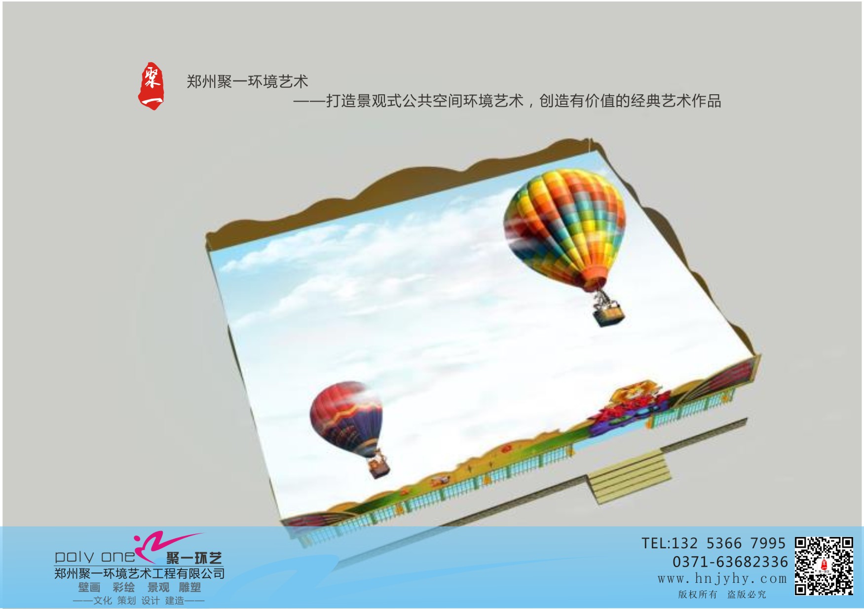 主要承接項目為:主題娛樂及休閑場所公共空間整體規(guī)劃設計;企事業(yè)單位及教育事業(yè)單位公共空間整體規(guī)劃設計為主項,其他為學校幼兒園、展館會所、酒店賓館、公司單位、商場、娛樂會所、生態(tài)園度假村、煙囪隧道、山坡橋梁等場所需要各種彩繪、壁畫、景觀、雕塑等。