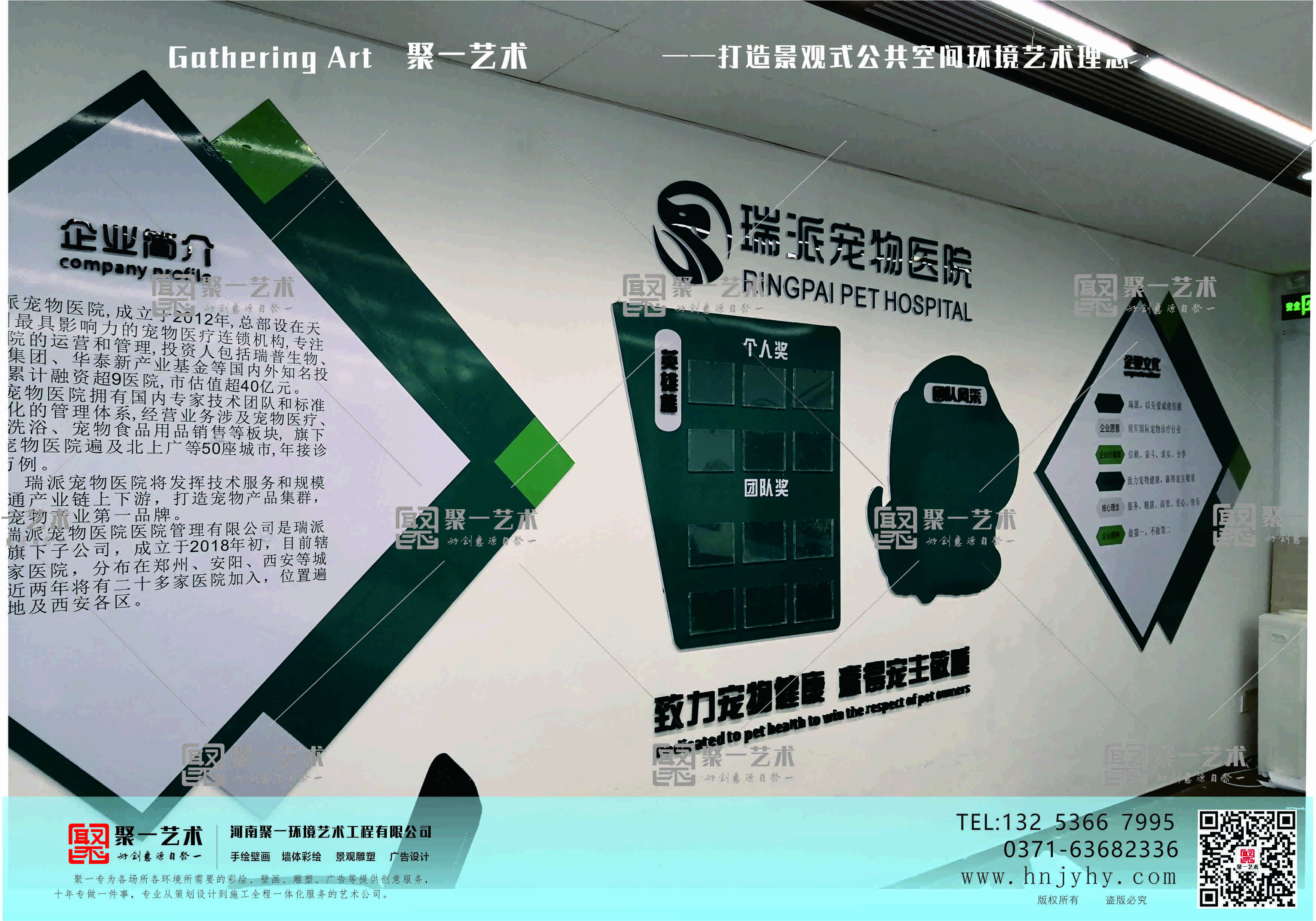 項(xiàng)目簡介:文化墻是企業(yè)精神文化形成過程的重要體現(xiàn),能夠集中表現(xiàn)出企業(yè)內(nèi)涵、企業(yè)形象、員工風(fēng)采等內(nèi)容。增強(qiáng)團(tuán)隊(duì)凝聚力的同時(shí)也是給客戶一種最為直觀的印象。